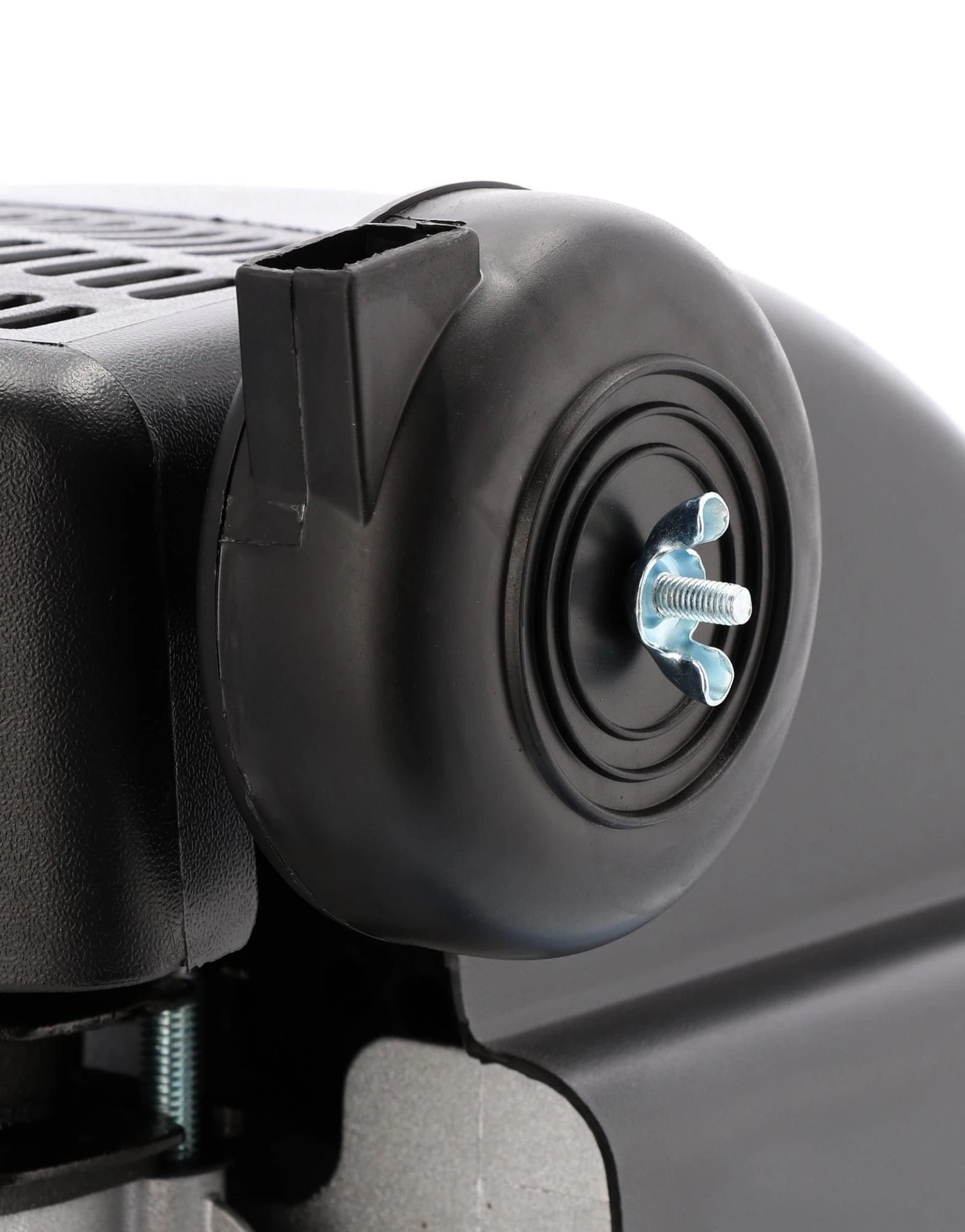 De compacte compressor is eenvoudig hanteerbaar door de wielen en het handvat. De wielen en de trillingdemper zorgen ervoor dat trillingen van de compressor gereduceerd worden.