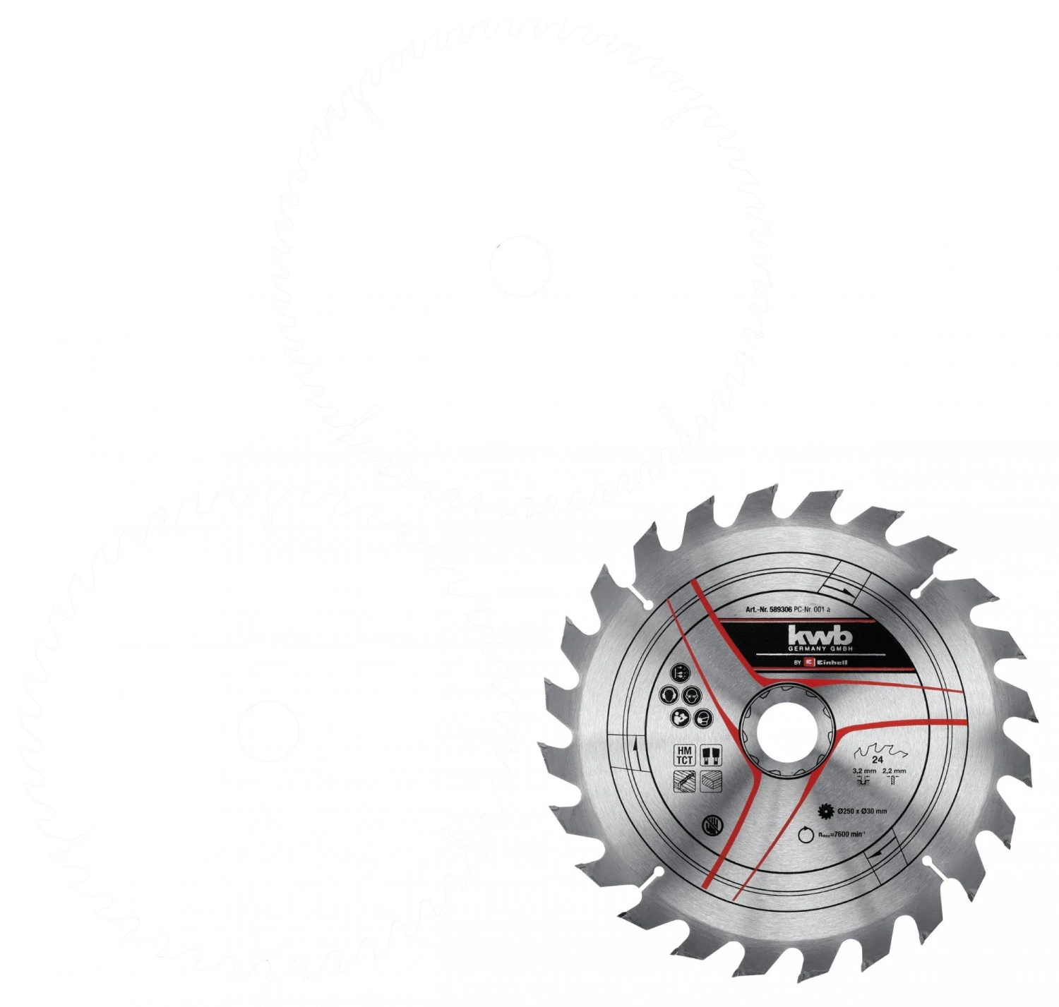 Afmetingen zaagbladen: Ø250xØ30×2,2 mm / 24, 48, 60 T