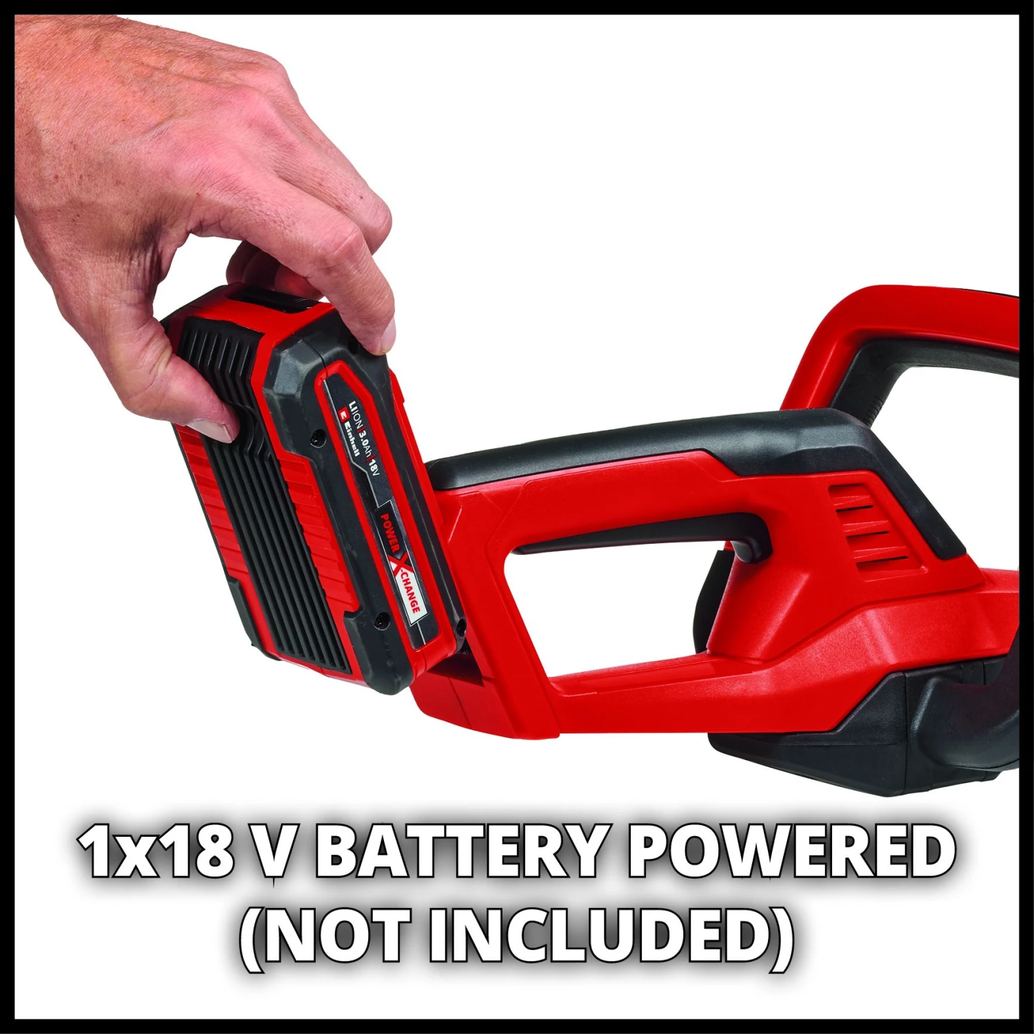 De Einhell accu Heggenschaar GC-CH 18/40 Li Solo combineert vermogen en flexibiliteit: Als onderdeel van de Power X-Change productlijn van Einhell wordt de heggenschaar van stroom voorzien door een krachtige li-ion accu uit deze productlijn. De kleine, handige heggenschaar is een echt ‘lichtgewicht’ en is hierdoor comfortabel te hanteren. De robuuste metalen tandwielaandrijving is ontworpen voor een lange levensduur en zorgt voor de perfecte overbrenging van het accuvermogen op de lasergesneden en diamantgeslepen stalen messen.