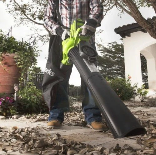 Met de Greenworks G-Max 40 volt accu bladblazer- en zuiger type GD40BV heeft u een zeer krachtige accu bladblazer en zuiger. De DIGIPRO koolborstel vrije motor zorgt voor 30% extra vermogen en 70% minder trillingen. Het grote voordeel van snoerloos bladblazen en zuigen is uiteraard geen verlengsnoeren, geen lawaai en geen brandstof. Dit laatste betekent geen uitlaatgassen en dus ook nog eens milieuvriendelijk werken.