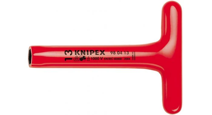 Speciaal gereedschapsstaal, in olie gehard en getemperd. VDE-getest volgens DIN EN/IEC 60900 : 2004. Knipex Dopsleutel T-greep 13 x 200 mm VDE