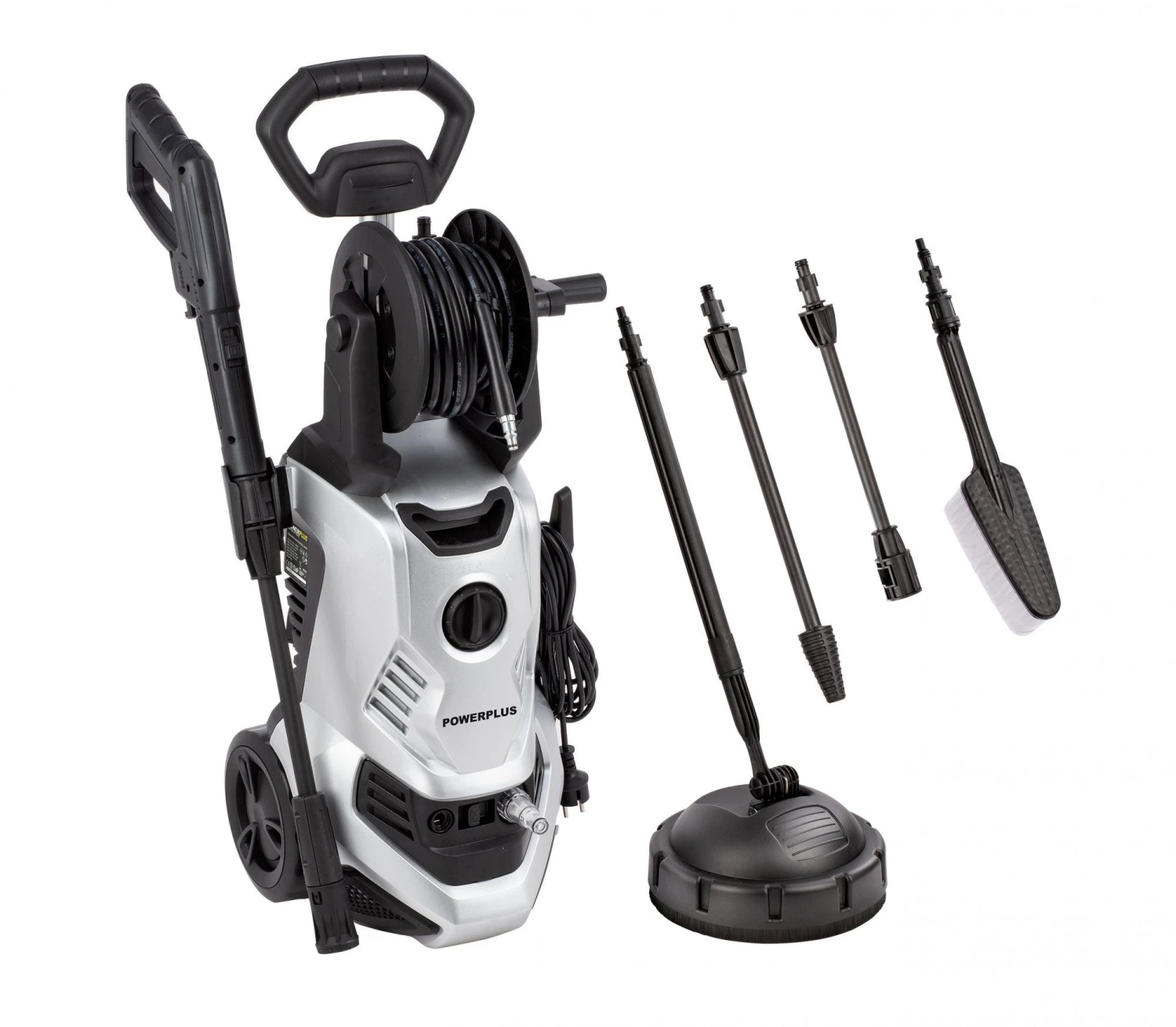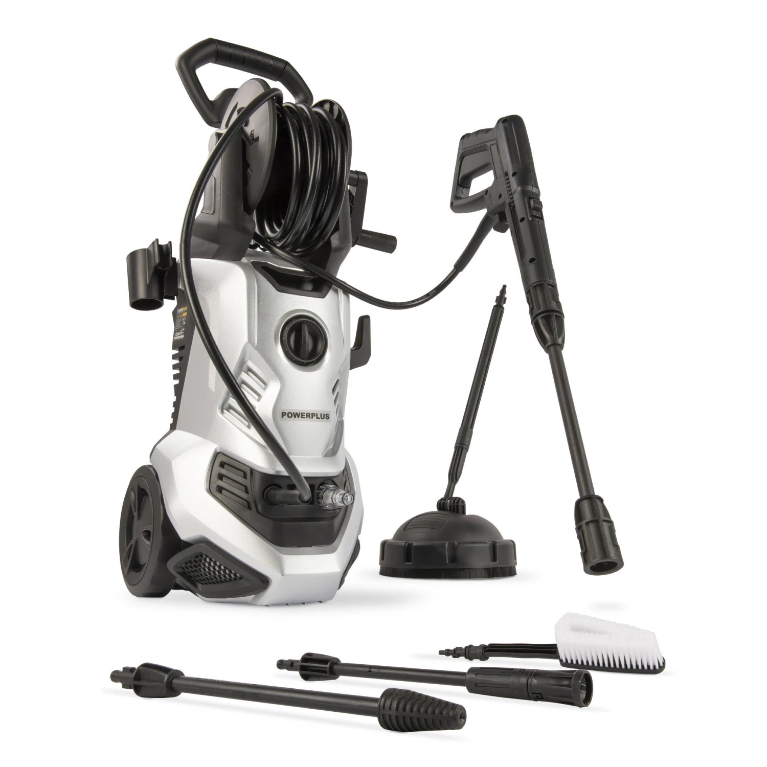 De POWXG90416 wordt geleverd met een borstel, terrasreiniger, verstelbare spuitmond en turbospuitmond.