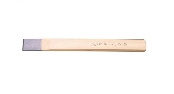 Sleufbeitel gelakt met een gepolijste kop. Voor het snijden van metaal en steen. Rennsteig Sleufbeitel 240 26×7 gelakt